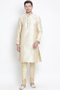 Men's Cotton Art Silk Kurta Set In Gold