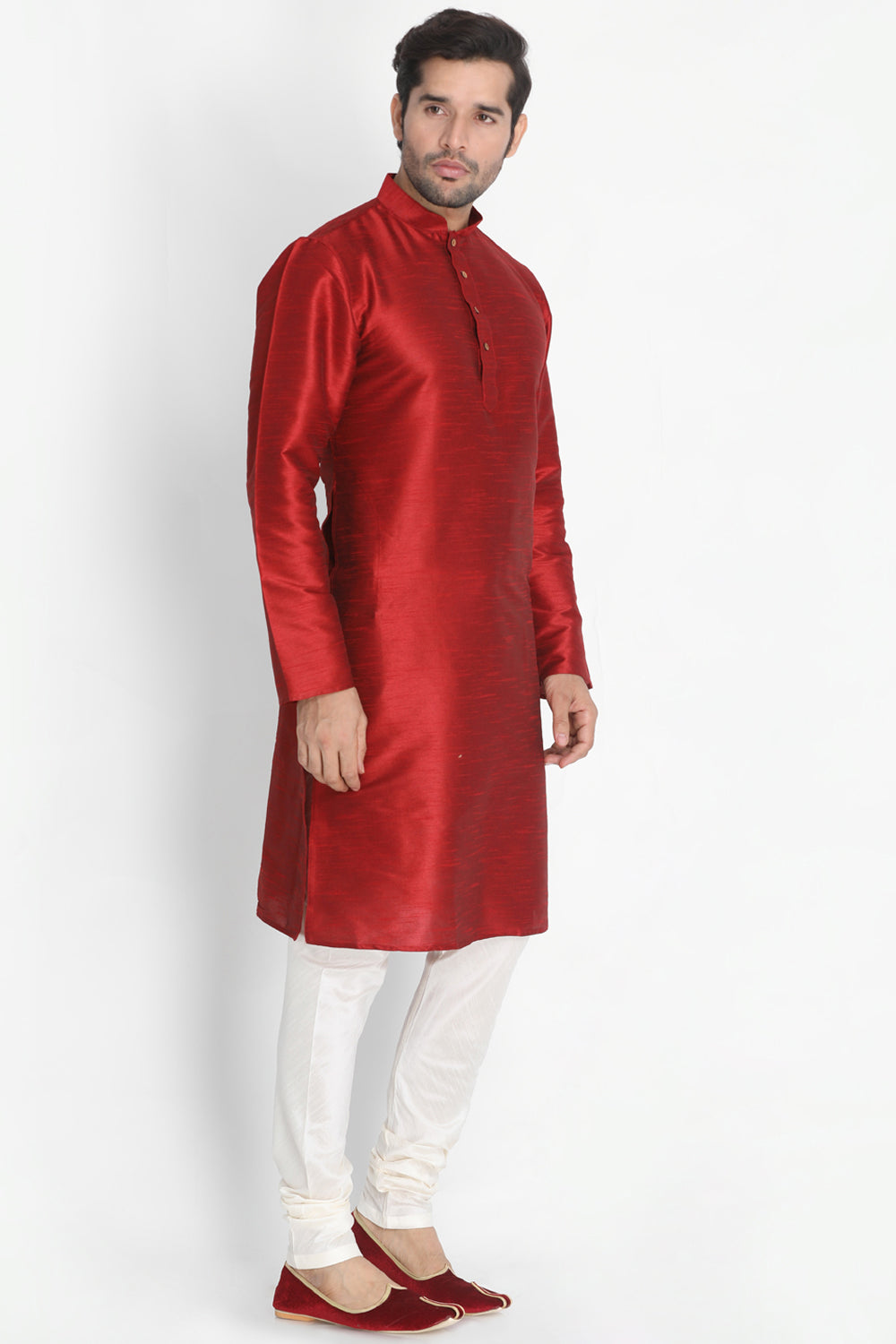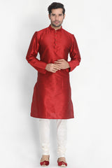 Men's Cotton Art Silk Kurta Set In Maroon