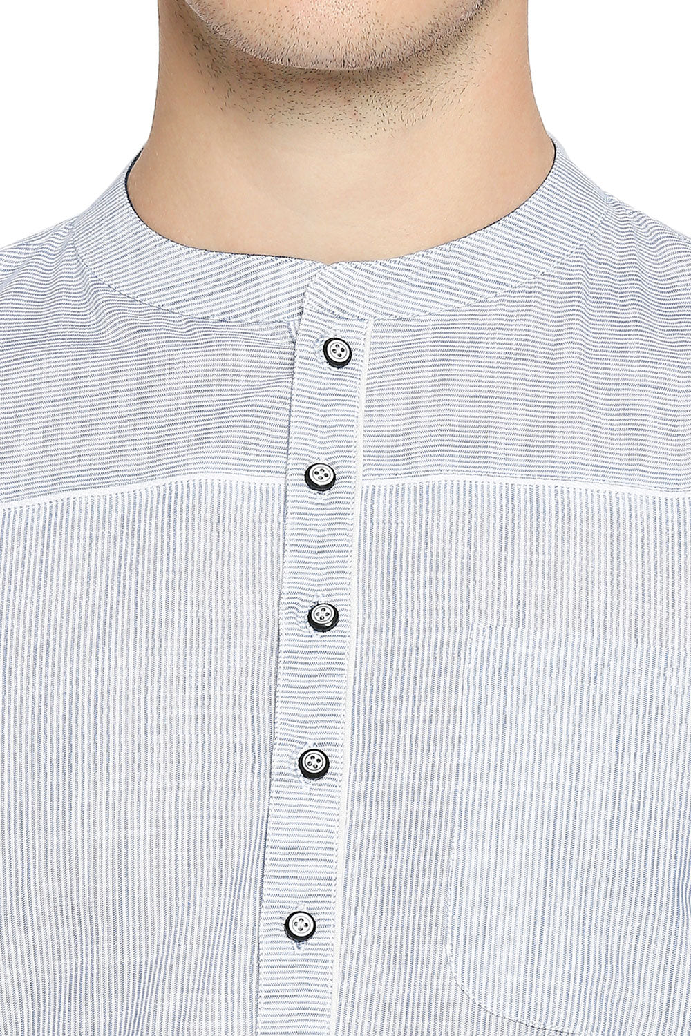 Men's Cotton Striped Short Kurta Top In White