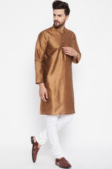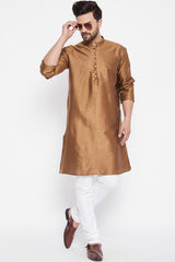 Men's Dupion Art Silk Woven Kurta Top In Brown