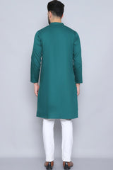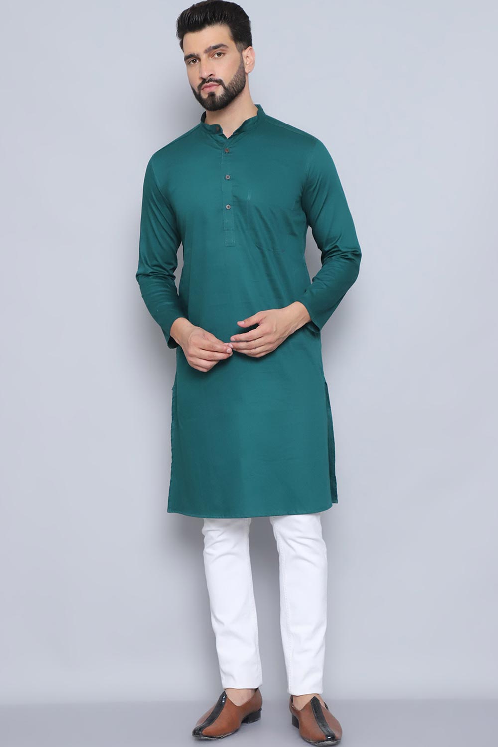 This elegant green cotton solid long kurta combines a refreshing color with a classic design. Its vibrant green hue and comfortable fabric make it a versatile piece suitable for a variety of occasions, from casual outings to festive events.