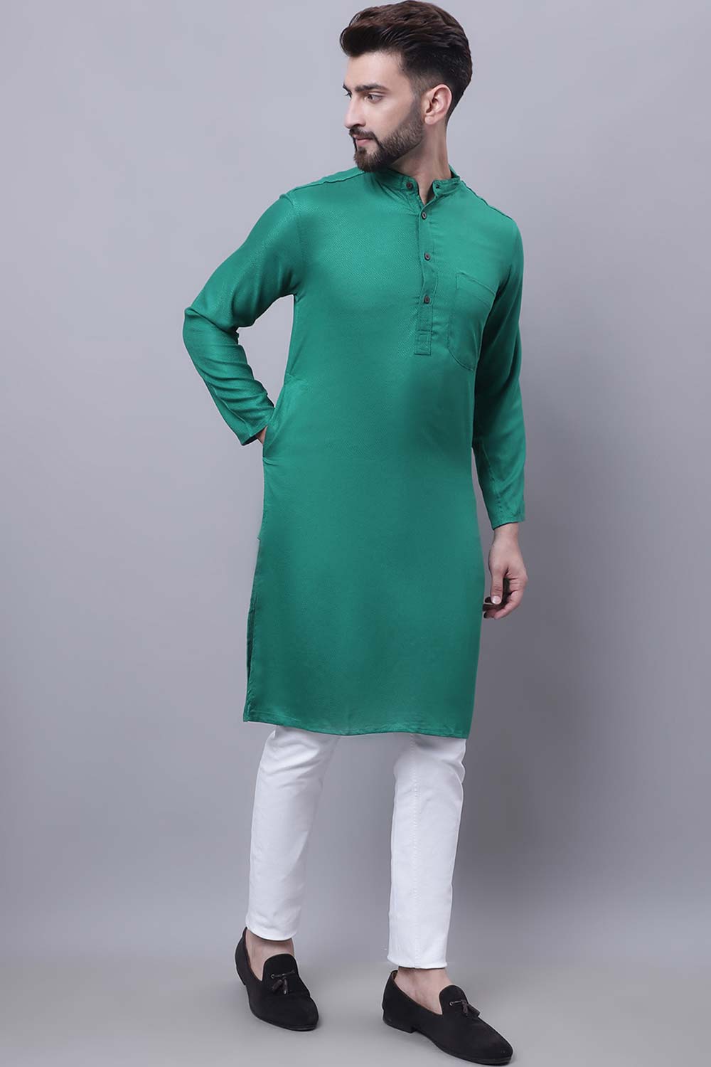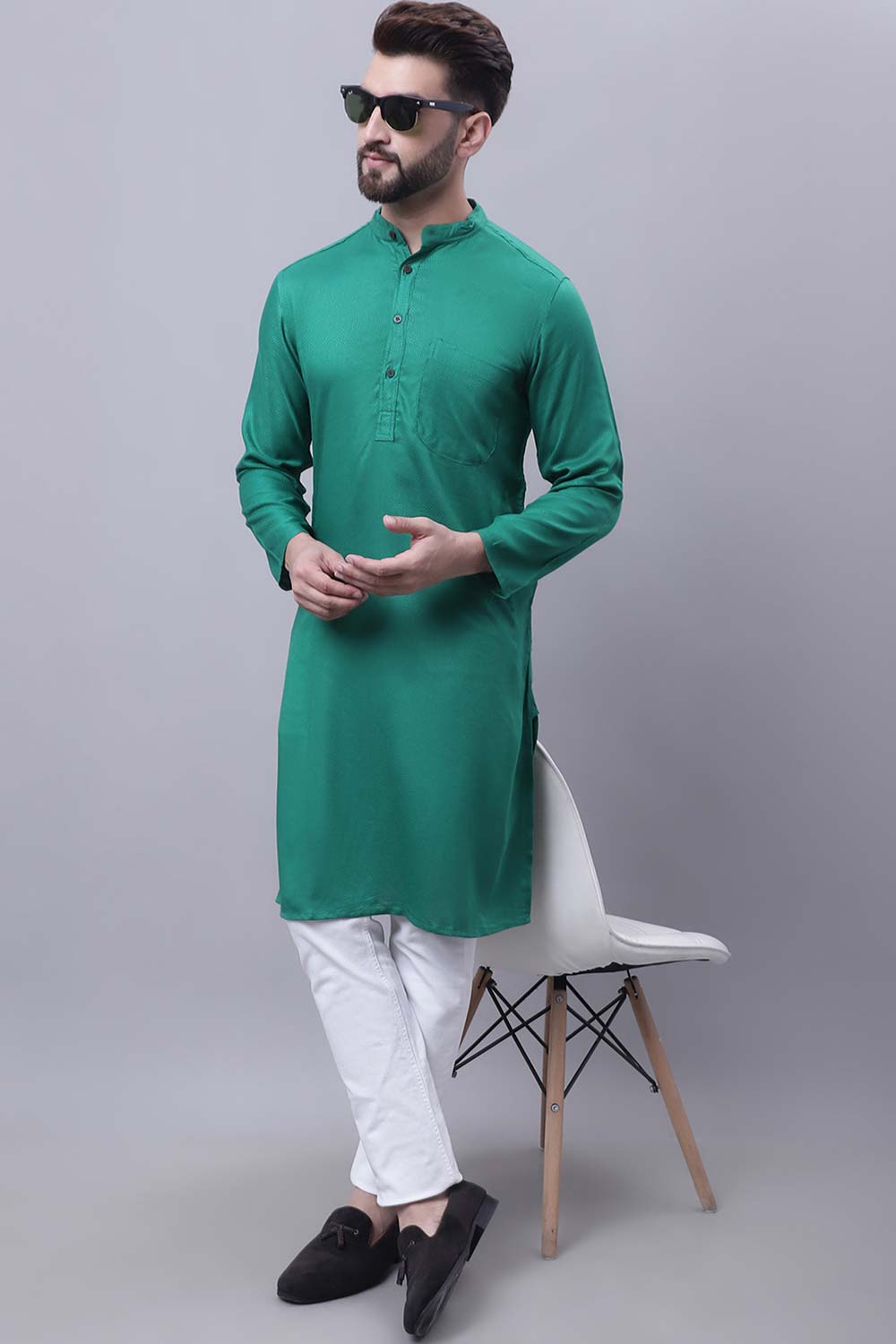 Men's Green Viscose Rayon Solid Long Kurta Top