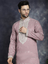 Men's Magenta Chikankari Embroidered Kurta
