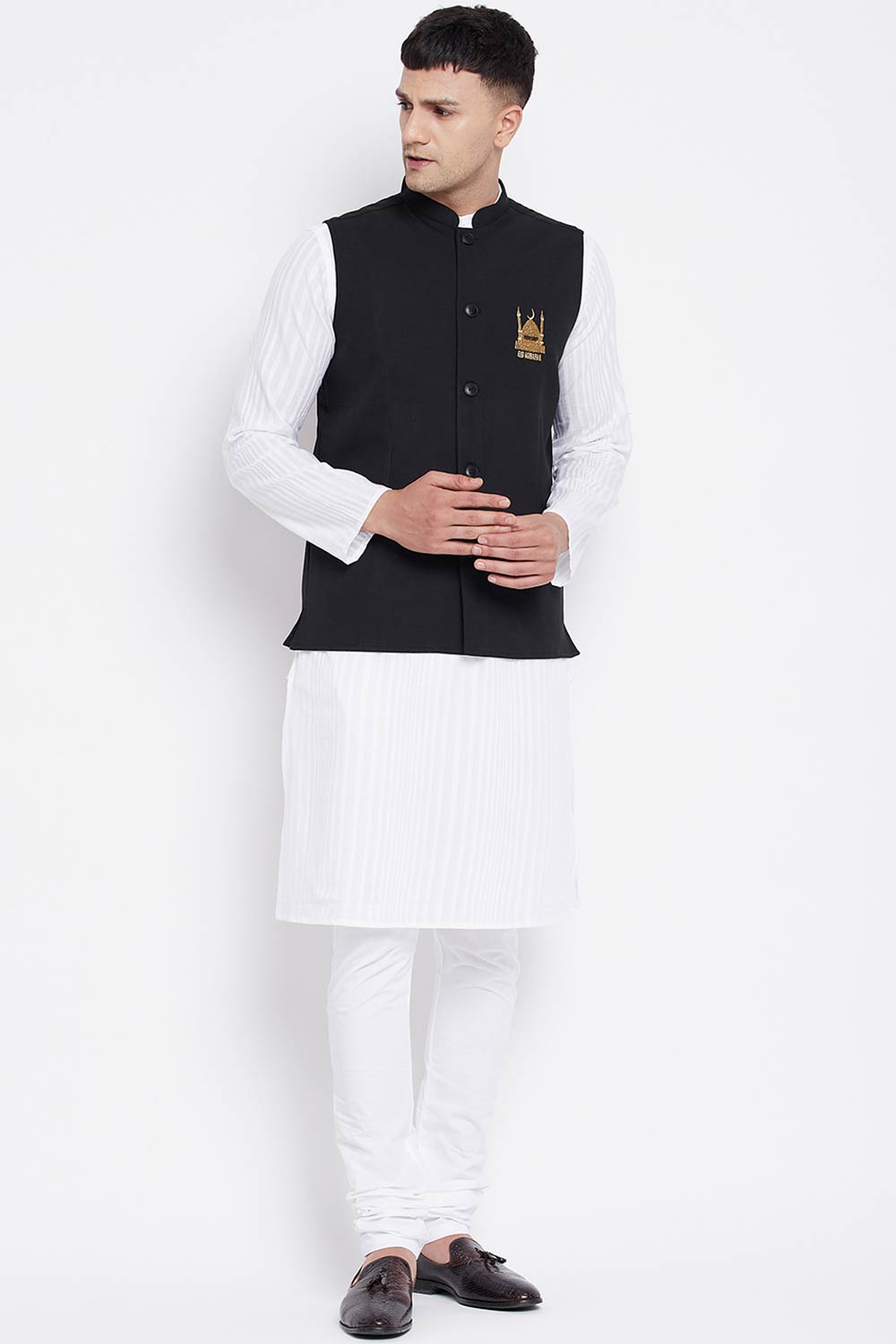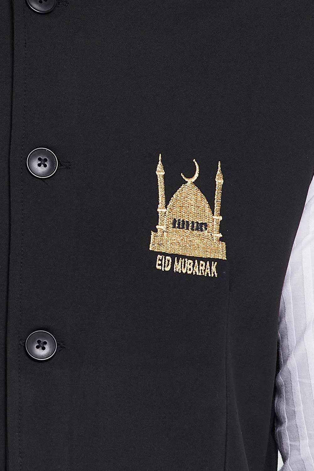 Men's Merino Eid Mubarak Embroidery Nehru Jacket In Black