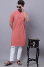 Men's Peach Cotton Long Kurta Top