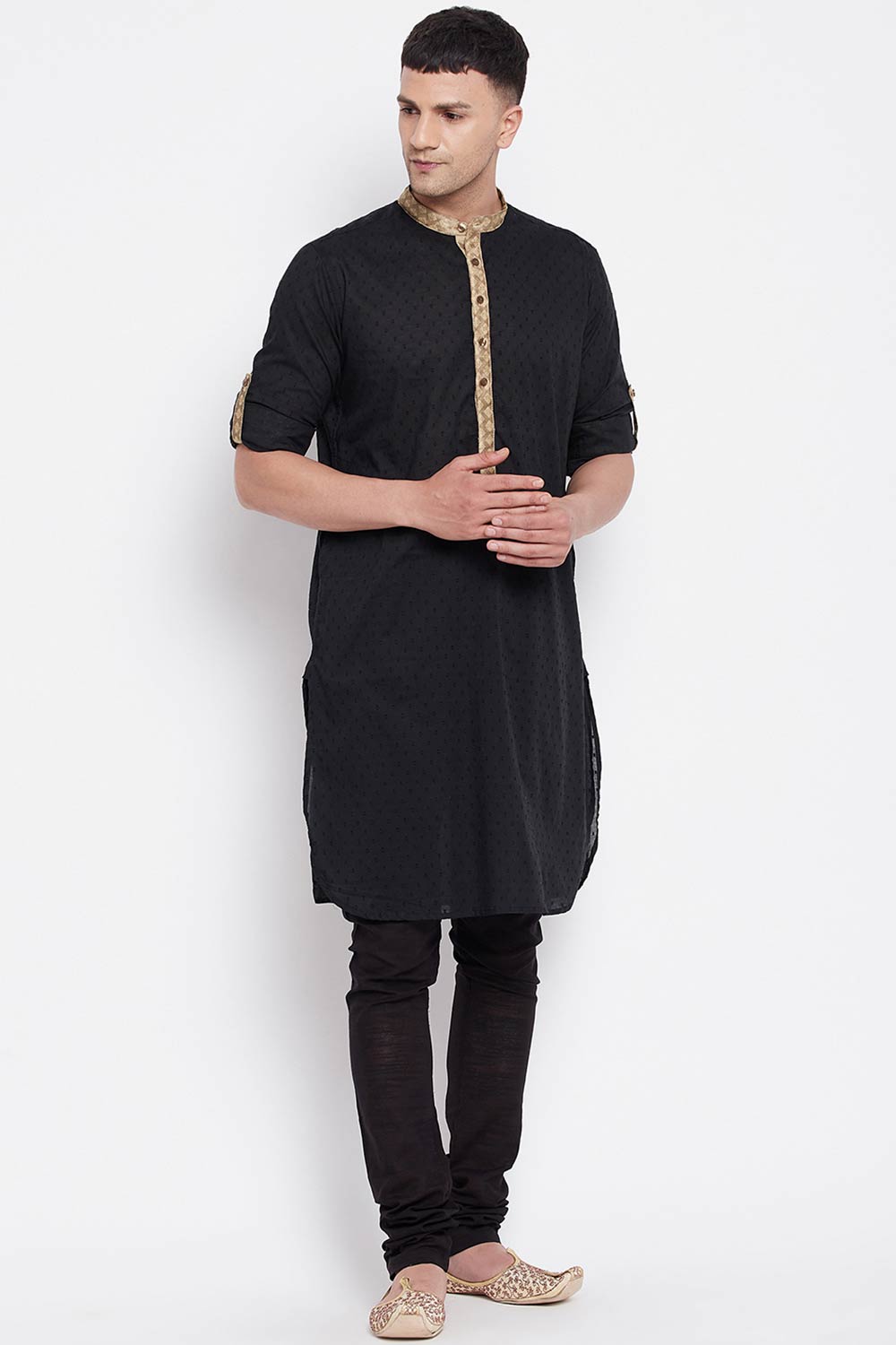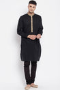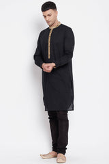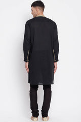 Men's Pure Cotton Solid Long Kurta Top In Black