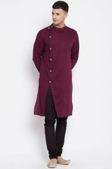 Men's Pure Cotton Solid Sherwani Top Kurta Top In Maroon