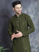 Men's Sequins Chikankari Embroidered Kurta With Pajama