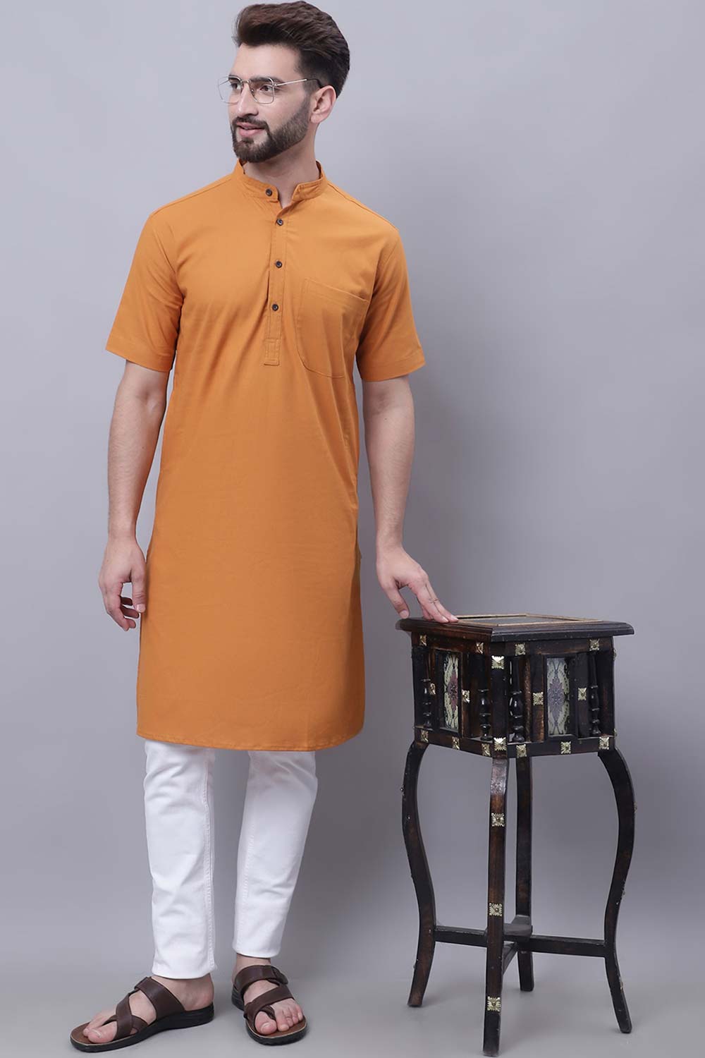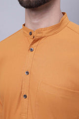 Men's Yellow Cotton Solid Long Kurta Top