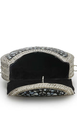 Marble And Silver Clutch from Anekaant's Mosaic Collection. This Mini Halfmoon Clutch is crafted in Metal and features a Hand Crafted Mosaic Embellished Pattern. Has a Sturdy and Detachable Chain Shoulder Strap. Has one Main Compartment secured with a Click Closure. Great accessory for young girls or women who want to carry something very small. Dimensions (LxHxW): 13 x 11 x 3 cm