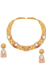Unveil your inner diva with our Necklace & earring Set a masterpiece that combines artistry and sophistication. Made from Brass this jewelry is adorned with Moissanite, American Diamond, Pearls, Natural Stones ensuring a dazzling finish. Whether you're dressing up for Partywear or adding flair to casual wear, this piece is your ultimate style companion. Pair it with modern accessories to complete your outfit and make every moment sparkle