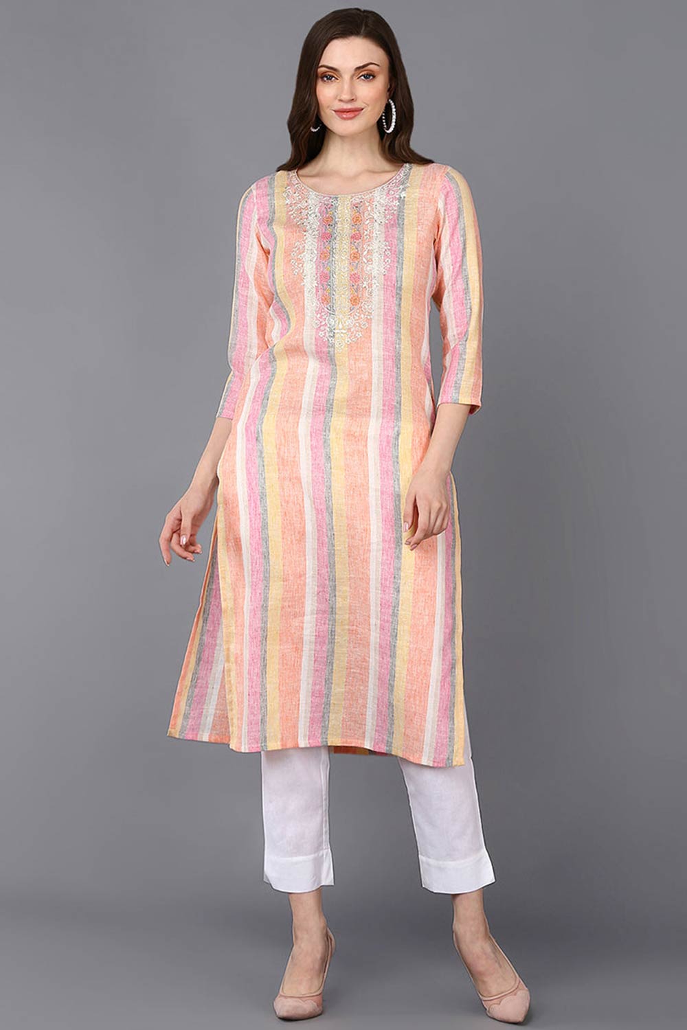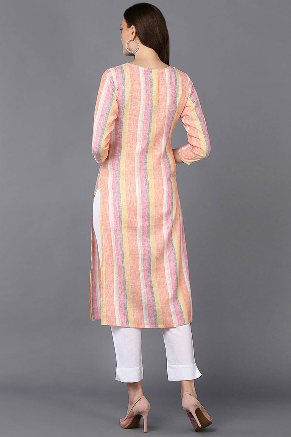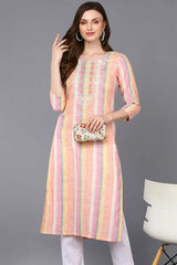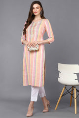 This Multi-Color Cotton Stripe Straight Kurti is a timeless choice for any occasion. The intricate prints add a touch of sophistication to the ensemble, while the comfortable rayon fabric ensures effortless elegance and ease throughout the day.