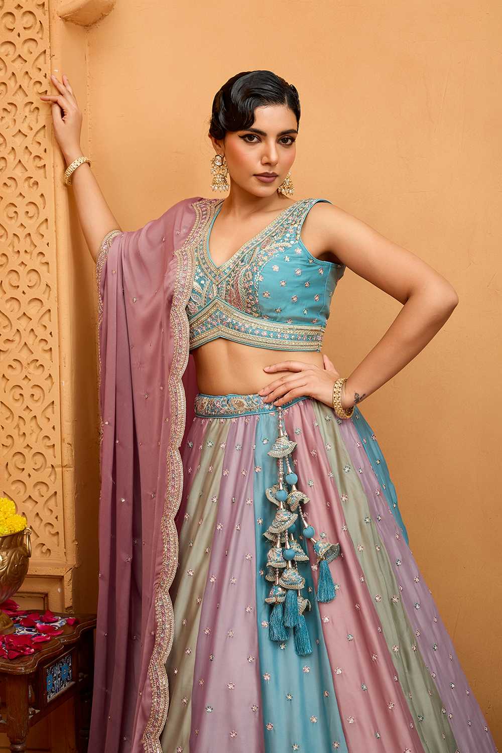 Step into the spotlight with our Lehenga a dazzling creation designed to make your special moments unforgettable. Crafted from premium Georgette this lehenga offers a perfect combination of elegance and ease, keeping you graceful all day long. The exquisite Floral Embroidered makes this lehenga a masterpiece of traditional craftsmanship. Whether it’s Sangeet,Party or a grand celebration, this lehenga is the perfect choice to make a statement. Pair it with an ornate choker, a matching dupatta, and embellished stilettos to complete the regal look. Add a sleek bun or cascading curls for added glamour. Make every moment magical with the timeless allure of Lehenga