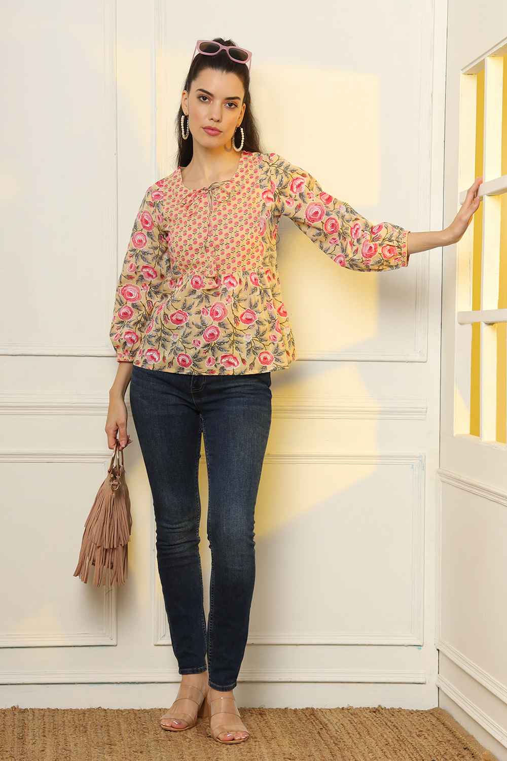 Stay on-trend with our Top a perfect choice for the modern woman. Crafted with lightweight Pure Cotton this piece is designed to keep you comfortable and chic all day long. The Floral Print add a contemporary edge, making it a versatile wardrobe staple. Whether for casual outings, this top/tunic seamlessly elevates your style Pair it with skinny jeans, a tote bag, and loafers for a Casual vibe or statement earrings and wedges for a more polished look. Add an effortless flair to your wardrobe with Top