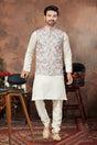 Multi-Color Floral Printed Mastani Silk Kurta Pajama Koti Set