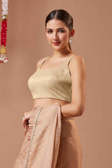 Transform your saree look with our Blouse the ultimate blend of style and comfort. Made from soft and breathable Wrinkled Tissue it ensures a snug yet flexible fit. The intricate Shimmer make this blouse a wardrobe essential. Perfect for Festivewear it works beautifully with traditional or modern sarees alike. Team it with a silk saree, a bold necklace, and embellished sandals for a sophisticated look. Redefine your saree style with Blouse