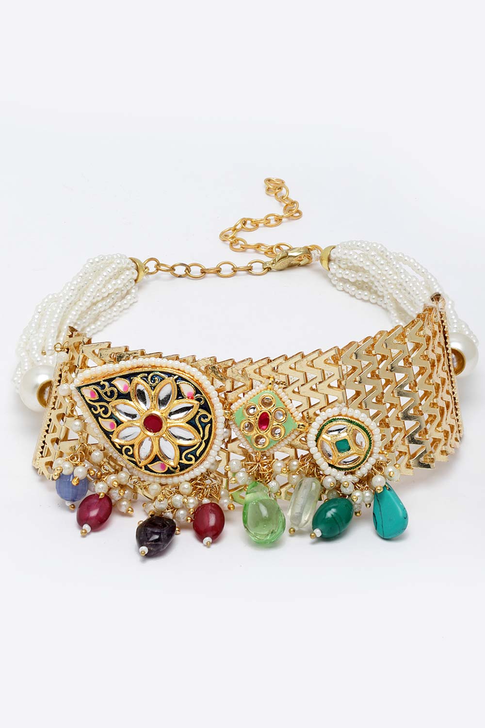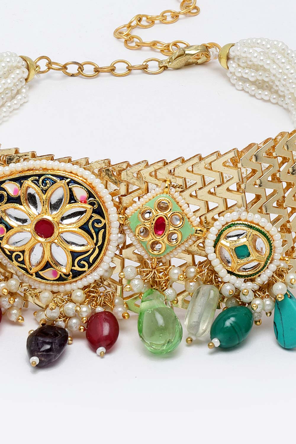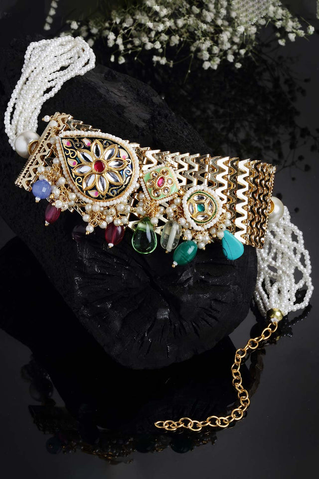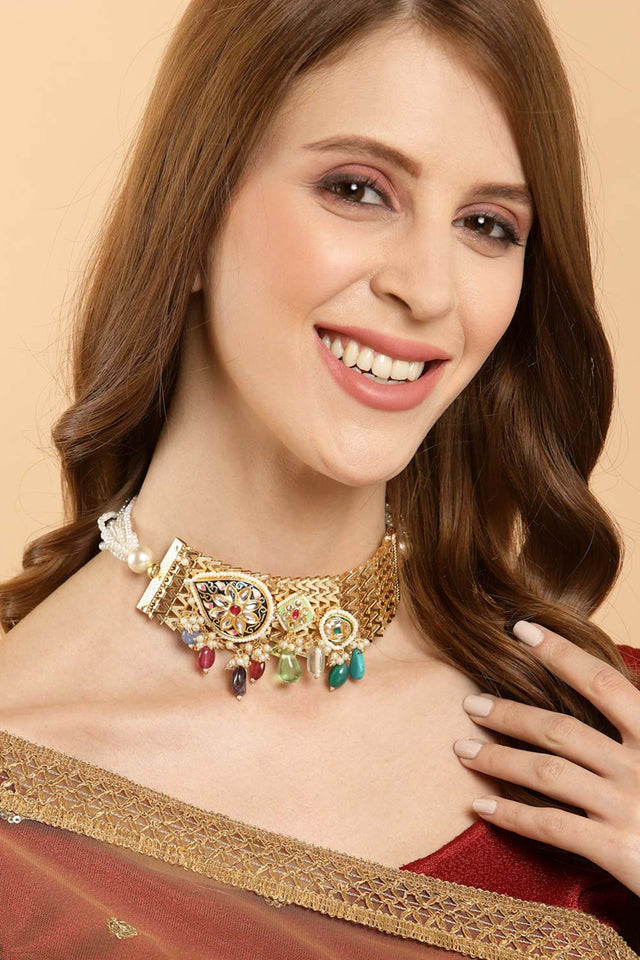 Multicolor Gold-Plated Kundan And Pearls Necklace