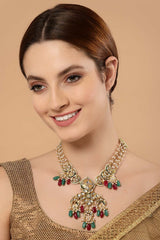 Multicolor Gold-Plated Kundan And Pearls Necklace