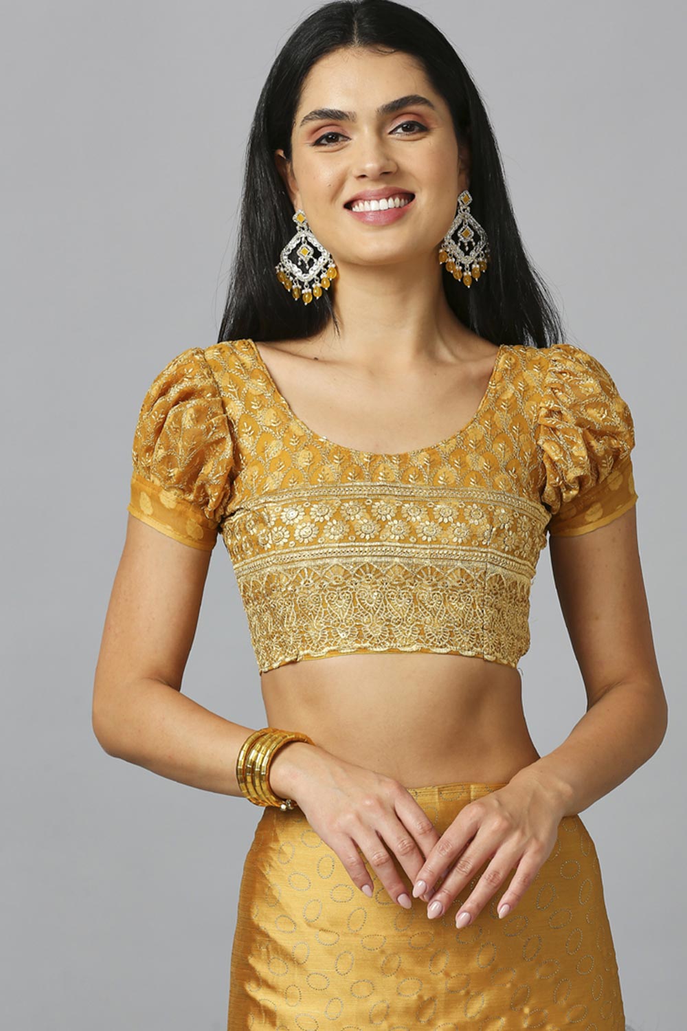 Mustard Chiffon Resham Embroidery Party Wear Designer Saree