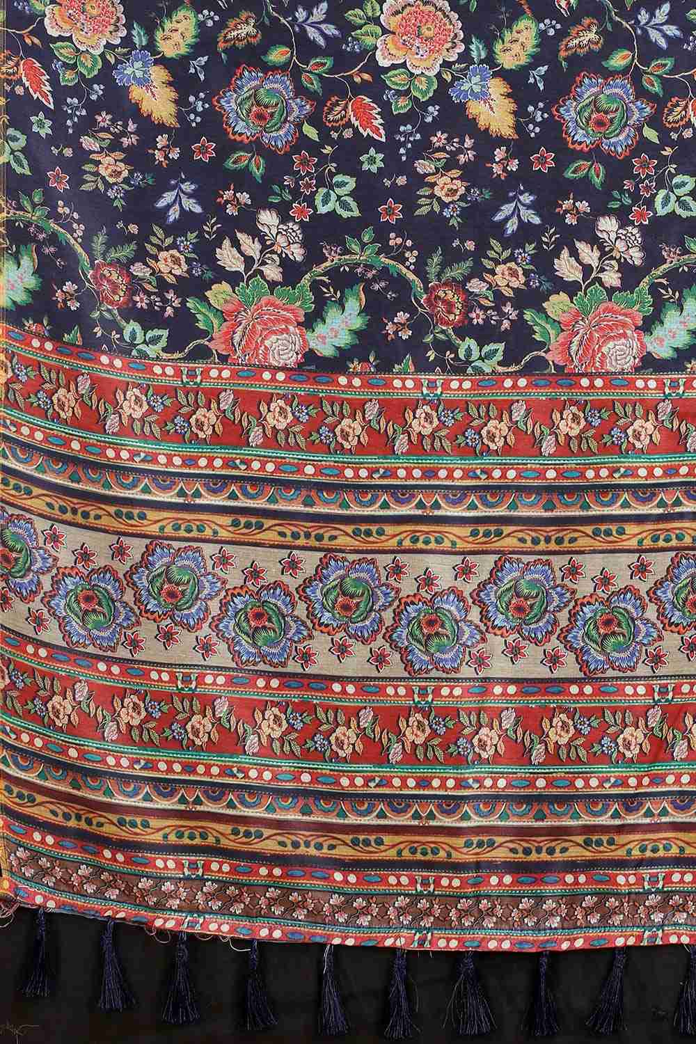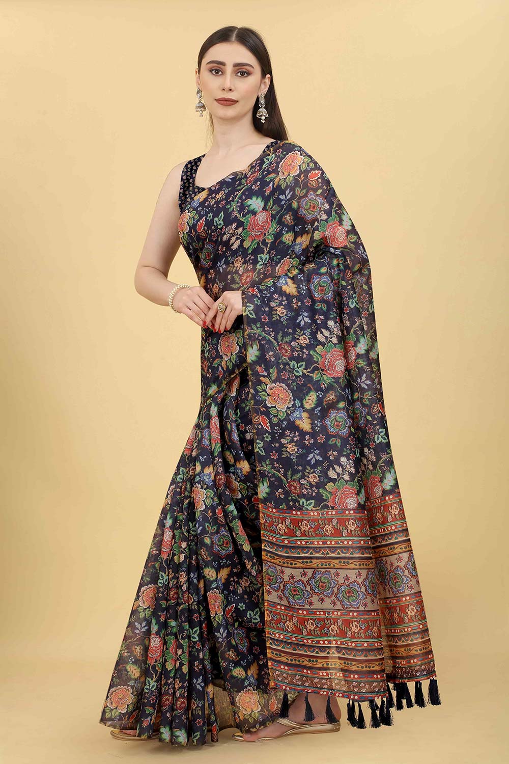 This printed cotton blend floral design saree with a very beautiful saree is definitely looks gorgeous on any type of women's skintone,saree has multiple shades with different patterns, you can wear it in any party or function.