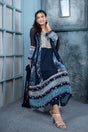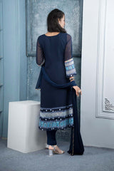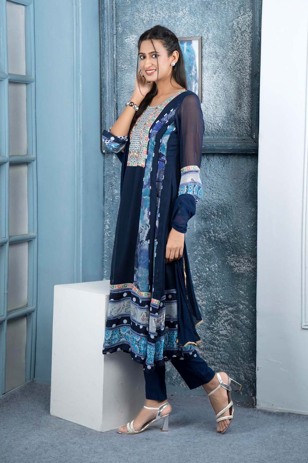 Navy Blue Embroidered Georgette Stitched Anarkali Trouser Kurti With Dupatta
