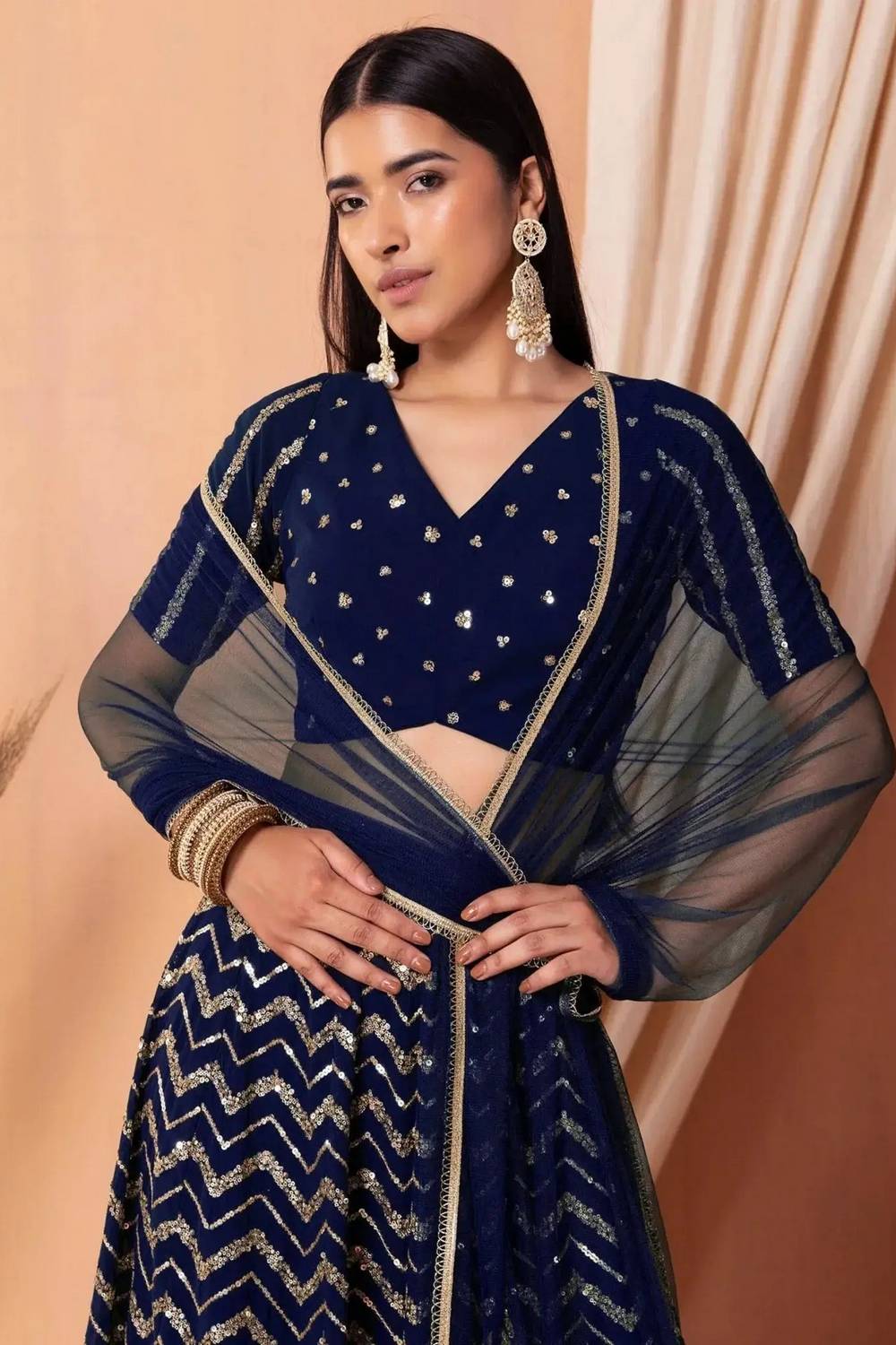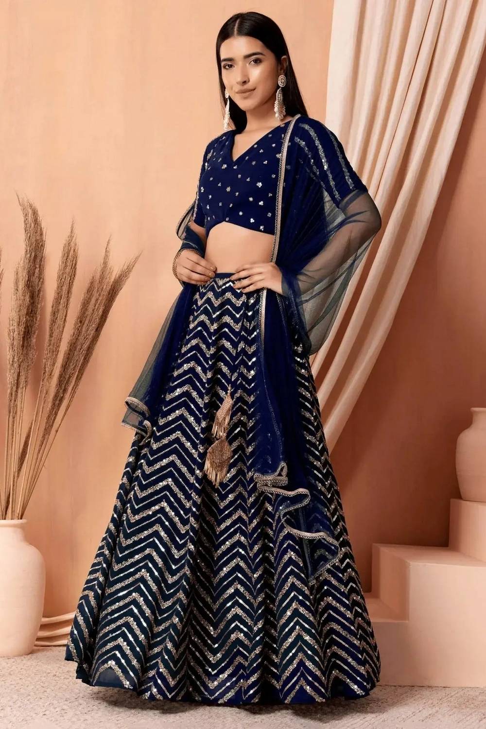 Step into the spotlight with our Lehenga a dazzling creation designed to make your special moments unforgettable. Crafted from premium Georgette this lehenga offers a perfect combination of elegance and ease, keeping you graceful all day long. The exquisite Sequin makes this lehenga a masterpiece of traditional craftsmanship. Whether it’s Sangeet,Mehendi or a grand celebration, this lehenga is the perfect choice to make a statement. Pair it with an ornate choker, a matching dupatta, and embellished stilettos to complete the regal look. Add a sleek bun or cascading curls for added glamour. Make every moment magical with the timeless allure of Lehenga