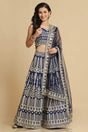 Navy Blue Taffeta Silk Embroidered Work Lehenga Choli
