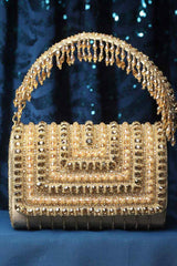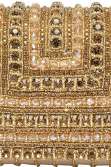 Nude And Gold Stone Work Embellished Suede Fold over Clutch