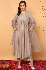 Nude Silk Blend Solid Embroidered Flared Suit Set