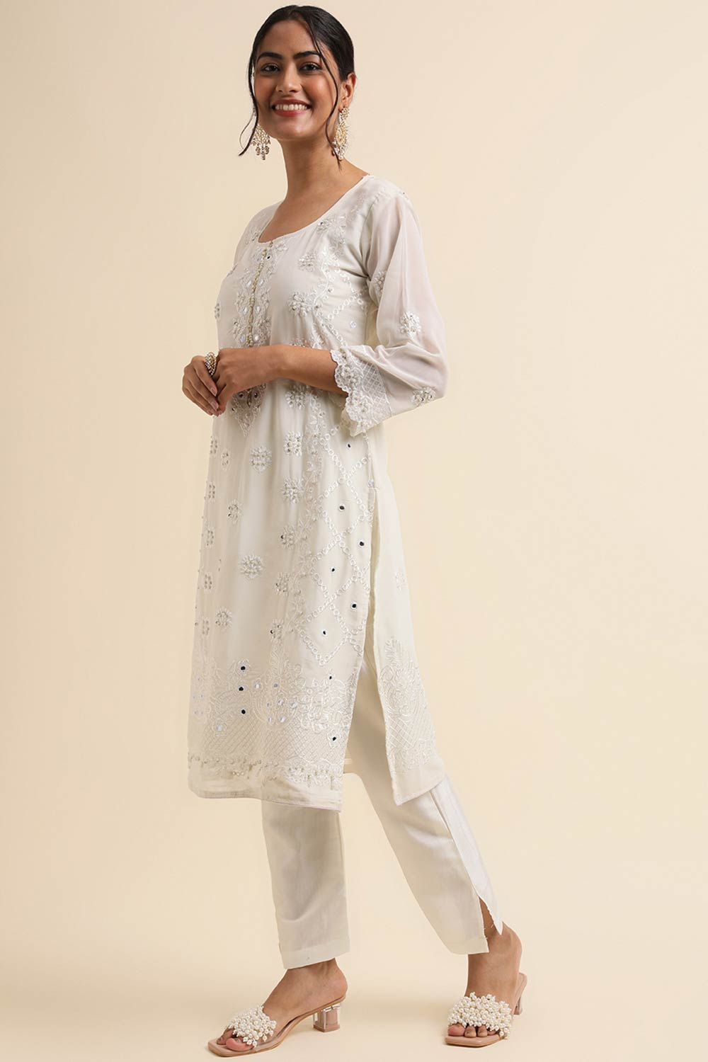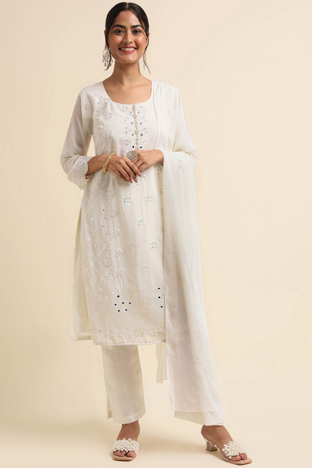 Off-White Faux Georgette Pakistani Suit