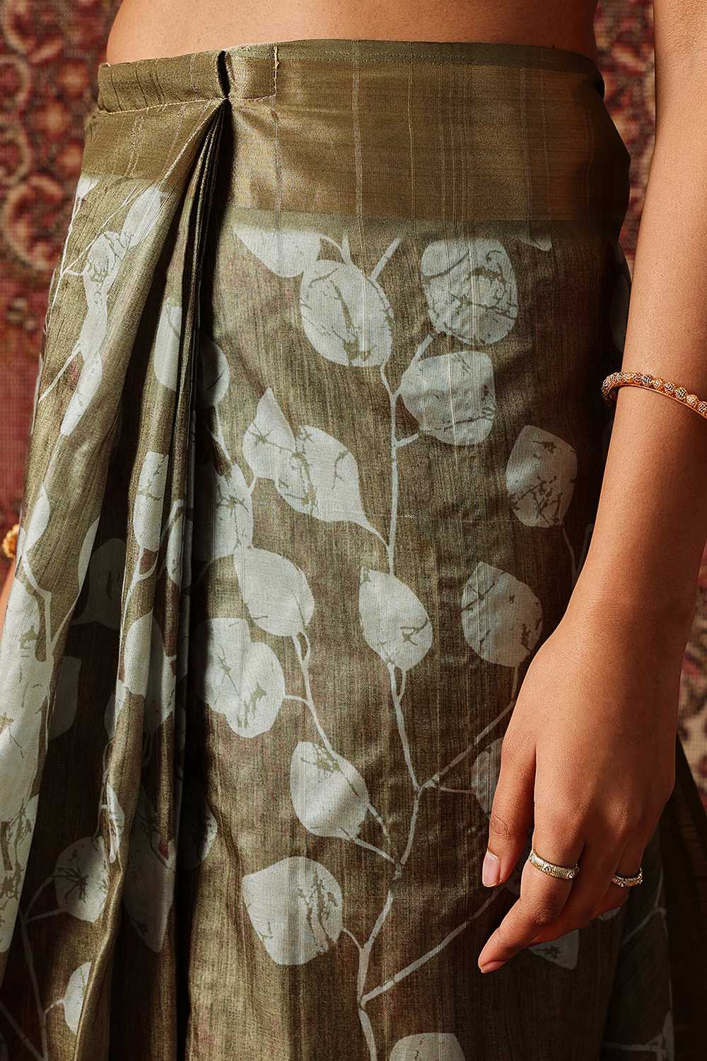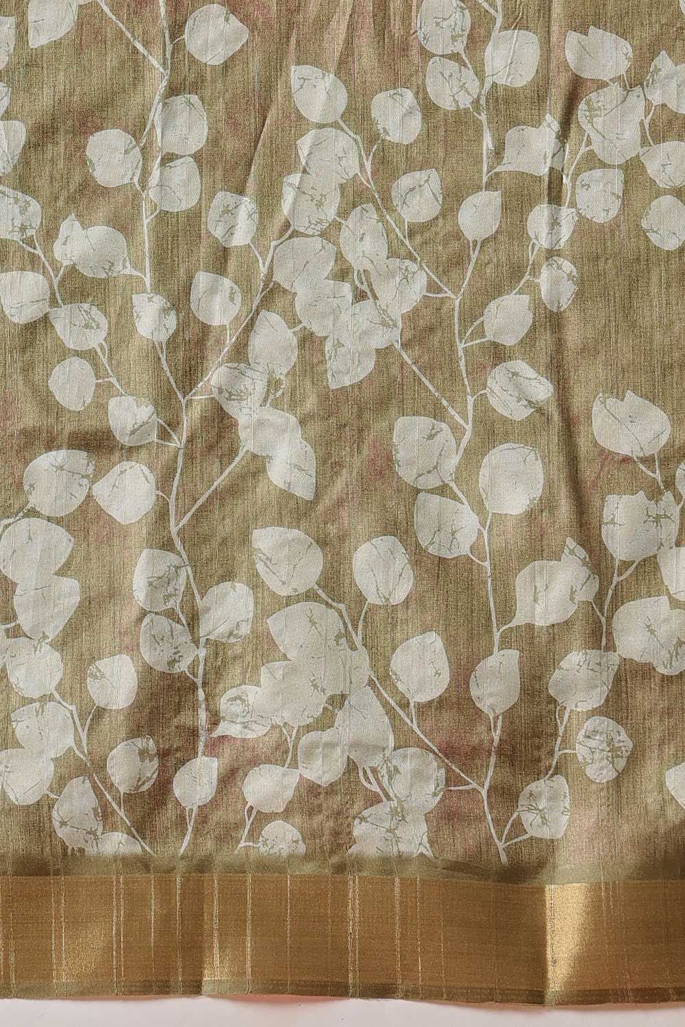 Olive Green Floral Printed Silk Ready to Wear Saree
