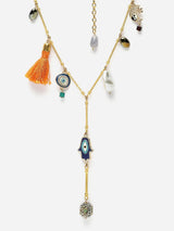 Orange And Blue Haar Necklace With American Diamonds And Pearls