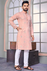 Orange Embroidered Linen Men's Kurta Set