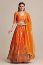 Orange Jacquard Silk Gold Woven Lehenga Choli