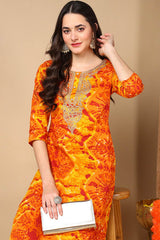 Orange Rayon Abstract Print Straight Kurti