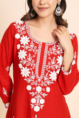 Orange Rayon Chikankari Embroiderd Work Kurti