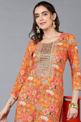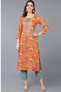 Orange Rayon Floral Print Round Neck Kurti