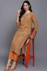 This Orange Rayon Floral Print Round Neck Kurti is a timeless choice for any occasion. The intricate prints add a touch of sophistication to the ensemble, while the comfortable rayon fabric ensures effortless elegance and ease throughout the day.