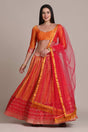 Orange Silk Blend Zari Woven Lehenga Choli
