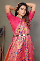 Elevate your wardrobe with our exquisite Saree, a masterpiece crafted to add timeless elegance to your style. Made from Tissue this saree offers a perfect mix of comfort and sophistication. Adorned with Woven it showcases intricate craftsmanship that speaks volumes of tradition and artistry. Perfect for Weddingwear,Festivewear this saree is a versatile addition to your collection, ensuring you stand out effortlessly. Pair it with elegant Jewelry, for a glamorous look. Add Clutches or Potli Bags and complete the ensemble with Wedges & Heels , making it a perfect choice for any event. Make a statement and embrace the elegance of Saree today