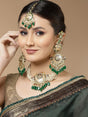 Peach And Green Gold-Plated Kundan And Pearls Necklace Earring Set With Maang Tikka