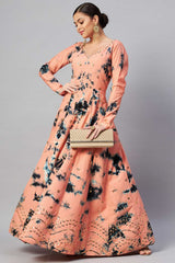 Peach Cotton Shibori Printed And Sequin Embroidery Work Gown