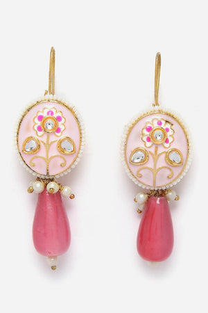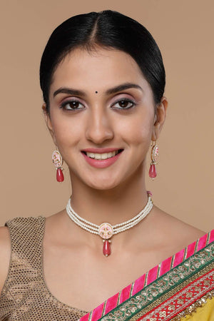 Pink And Gold Necklace With Earring Jewelry Set Kundan And Pearls