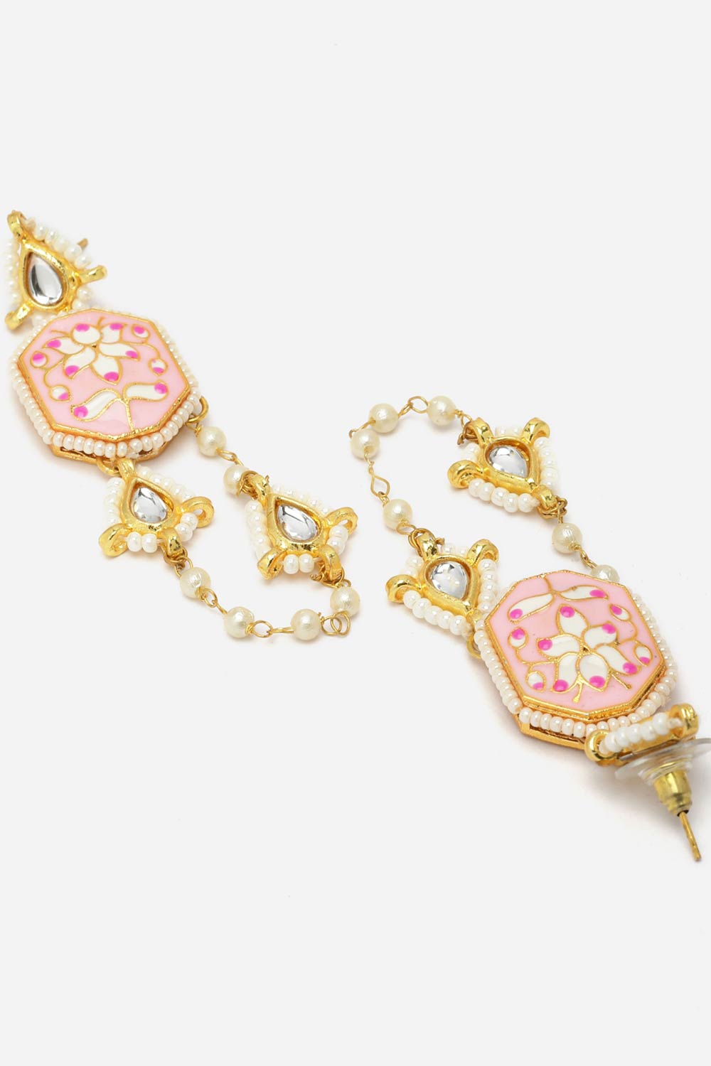 Pink And Gold Necklace With Earring Jewelry Set With Kundan And Pearls