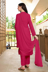 Make an elegant statement with this Art Silk Embroidered Kurti Pant Set. The delicate embroidery on the luxurious silk fabric offers a beautiful blend of tradition and modern style for your next celebration.
