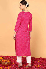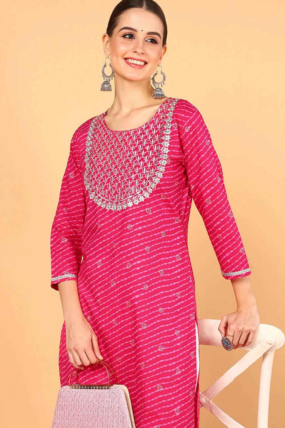 This Pink Cotton Leheriya Straight Kurti is a timeless choice for any occasion. The intricate prints add a touch of sophistication to the ensemble, while the comfortable rayon fabric ensures effortless elegance and ease throughout the day.