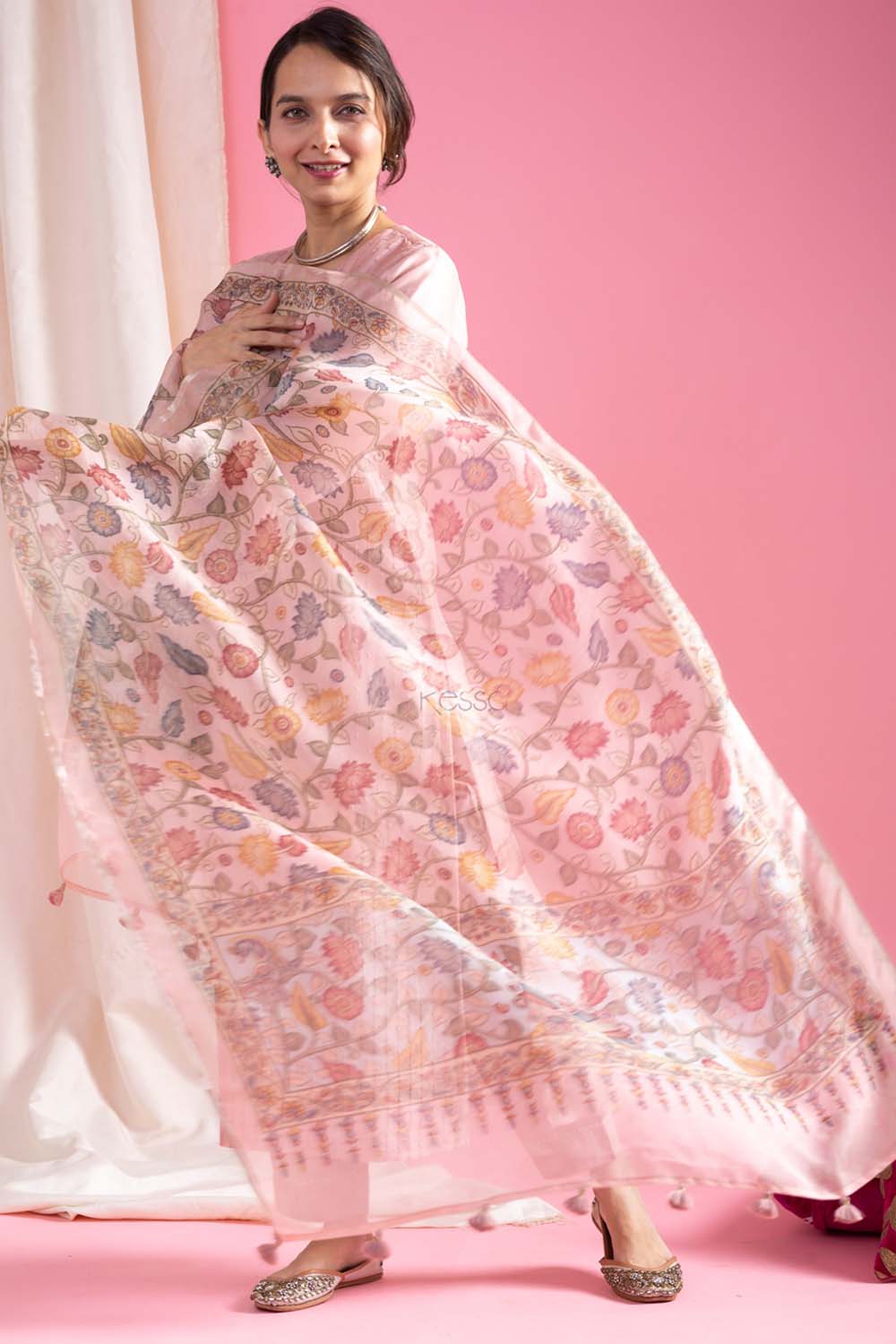 Pink Embroidered Chanderi Straight Cut Suit Set