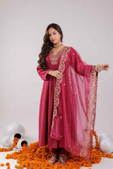 Pink Embroidered Silk Kurti Pant Set