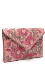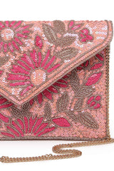 Pink Floral Embellished Satin Sling Bag