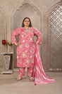 Pink Floral Printed Rayon Straight Cut Suit Set